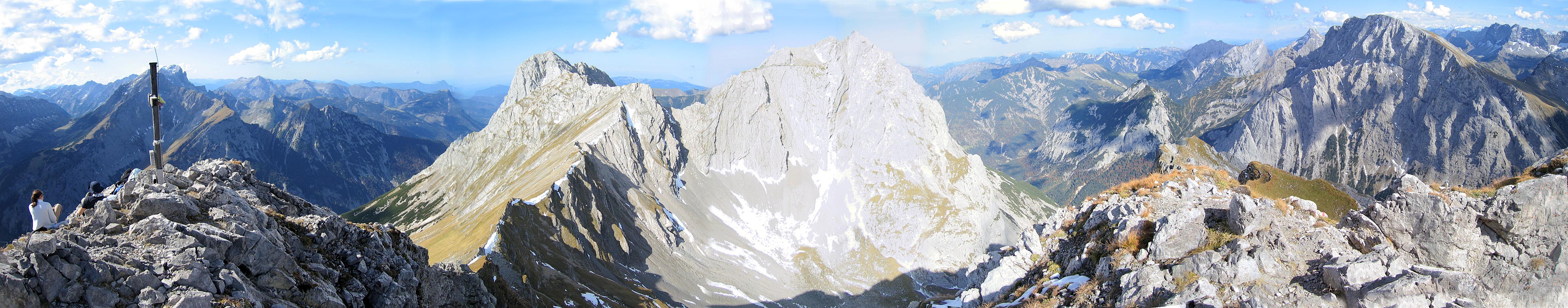 Panoramabild von Westen (Nördliche Karwendelkette) über Norden (Laliderer Falk) nach Osten (Gamsjoch)