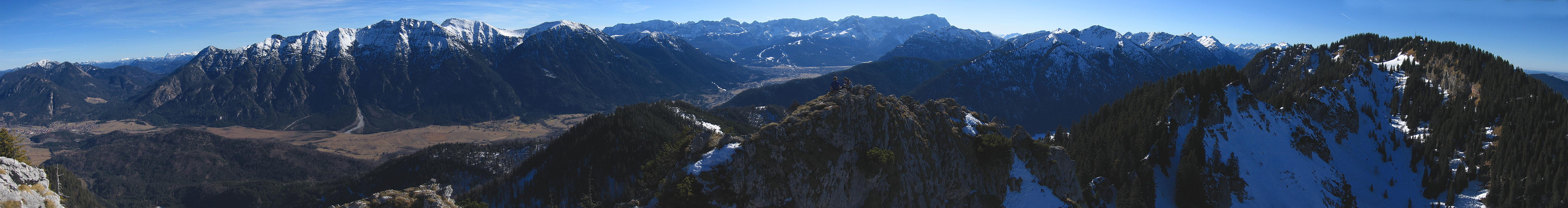 OSW---------- Blick vom EttalerManndl - nach Osten zum Estergebirge - nach Süden das Wettersteingebirge und Garmisch-Partenkirchen - im Westen ins Allgäu ------------- OSW